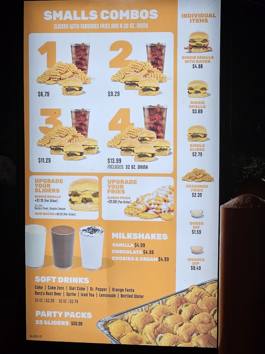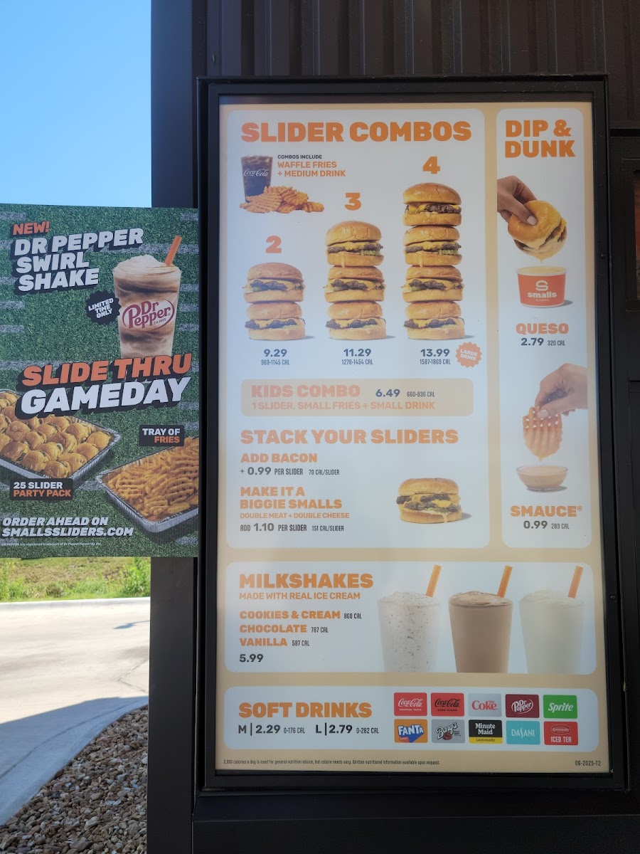 Customers rave about the homemade-style sliders, noting their flavor and quality. While the menu is primarily slider-centric—with shakes like vanilla, chocolate, and a unique Dr Pepper shake—some diners express a desire for more variety. Overall, Smalls Sliders impresses with its friendly service and delicious offerings, creating an inviting atmosphere that beckons to both new visitors and returning fans alike. This is truly a place worth savoring!