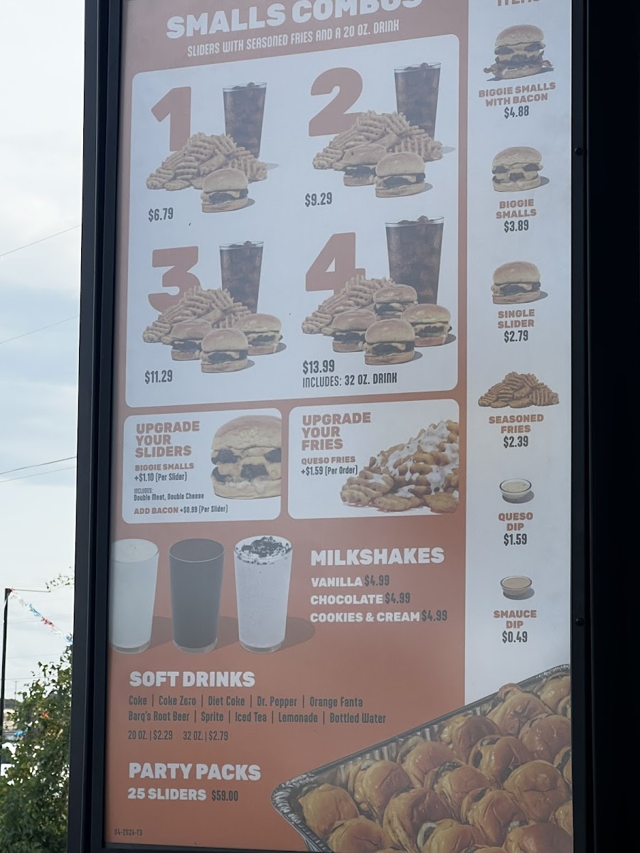 Introducing Smalls Sliders - Jonesboro, a delightful burger haven located at 2807 Red Wolf Blvd, where sliders take center stage. Priced affordably, each slider starts at just $2.79, making it a perfect stop for a quick bite. The menu features the signature seasoned waffle fries, available with an enticing queso sauce for only $0.99. For those hosting gatherings, their Party Packs are a hit, offering 25 cheeseburger sliders or their Biggie option with double meat and cheese.